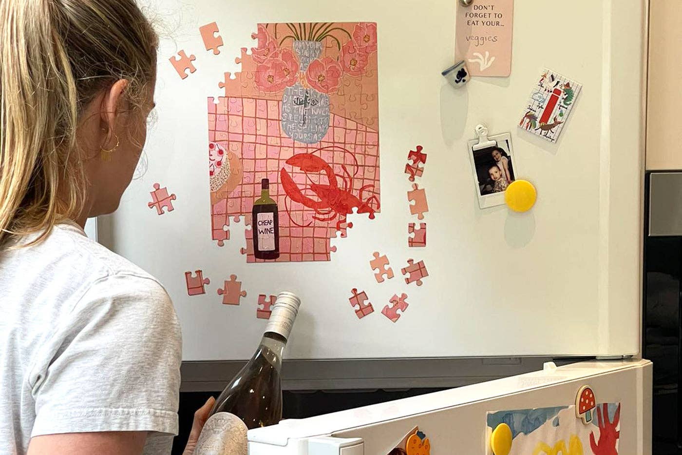 Keep this super cool, 100 piece magnet puzzle on your fridge or anywhere that holds magnets. Chip away at it every time you need a snack (and by snacks we mean wine).