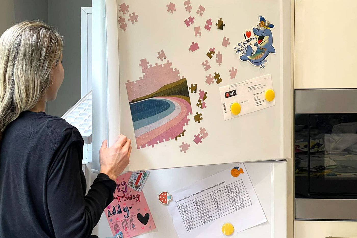 Keep this super cool, 100 piece magnet puzzle on your fridge or anywhere that holds magnets. Chip away at it every time you need a snack (and by snacks we mean wine).