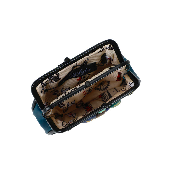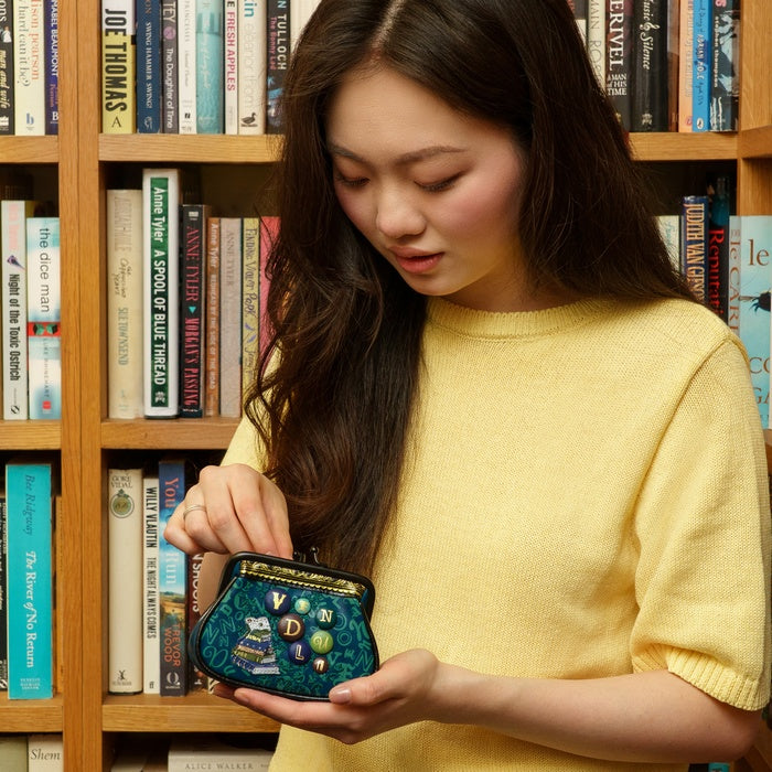 Don’t let its size fool you—the Between the Covers Bookbinders Clipper Coin Purse is packed with character! Made from vegan leather, it features two separate compartments to store your coins, cards, or receipts, all secured with a traditional clasp closure. The printed and embossed artwork is as intricate as a classic novel, with gold foil highlights and vibrant bookstore-inspired details. Slip it into your bag or pair it with a Mini Grace or Kate Bag for an effortlessly coordinated look. It’s vintage charm with a modern twist!