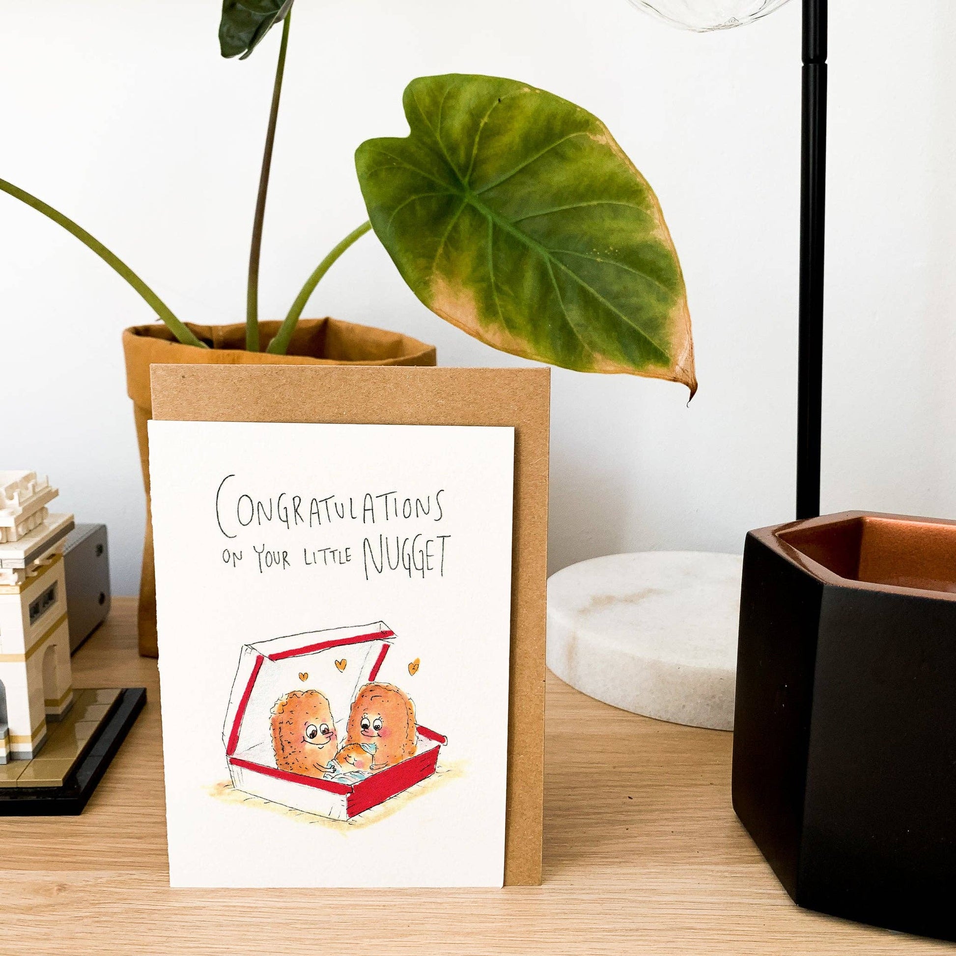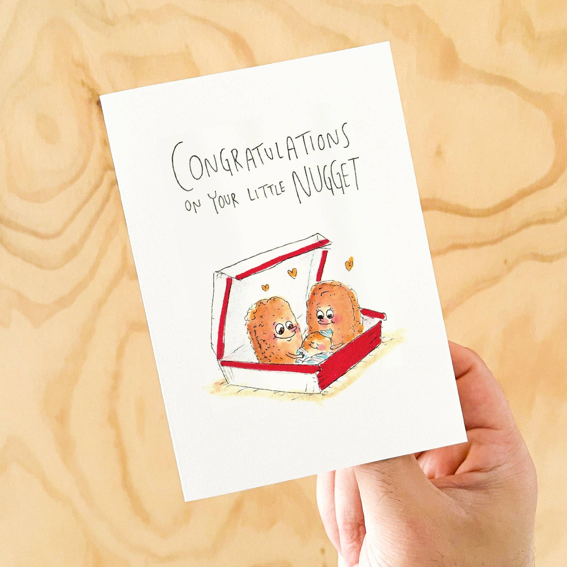 Get ready to dip into cuteness overload with our “Congratulations on Your Little Nugget” greeting card! 🍗 Featuring two happy nuggets holding their nugget baby, this hand-drawn design is the perfect way to celebrate a new arrival. Whether you’re attending a baby shower or sending congratulations from afar, this pun-tastic card is sure to deliver smiles and giggles!
