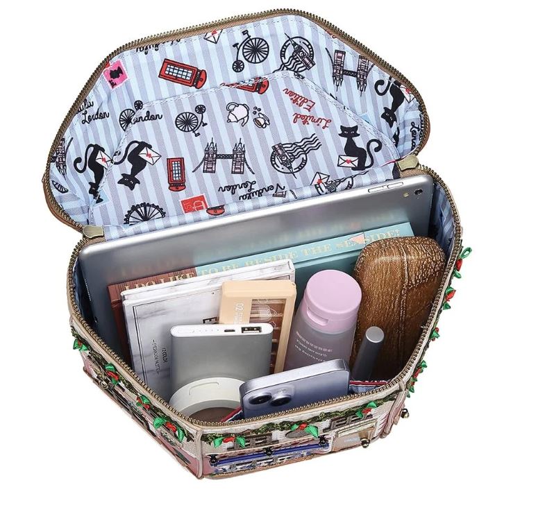 Special edition Coronation themed bag to celebrate the coronation of King Charles III. This vegan leather bag can fit in all of your essentials, thanks to its roomy main compartment and pockets. Not only can it be used as a backpack, but it can also be carried like a handbag, crossbody or worn over the shoulder thanks to the detachable straps it comes with.