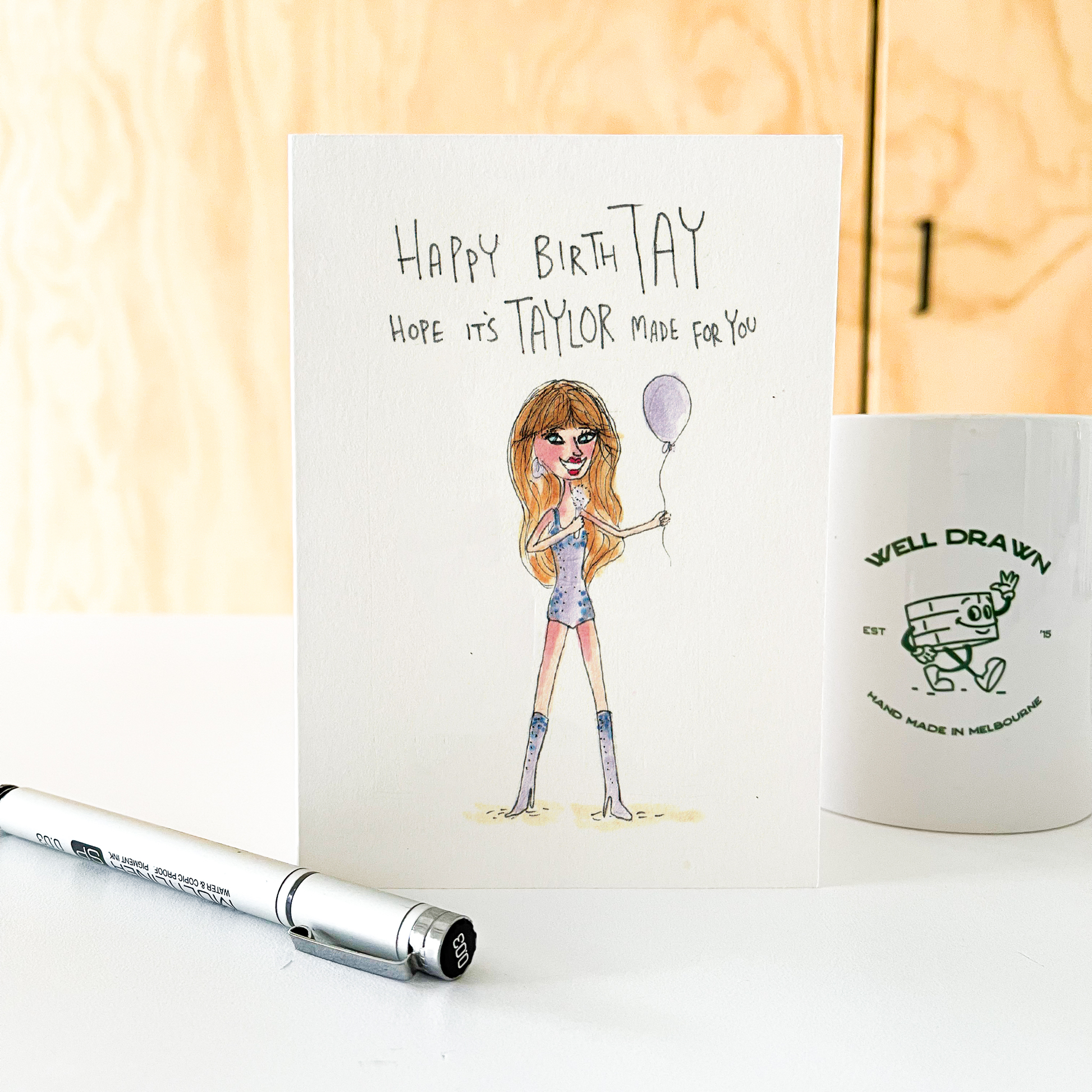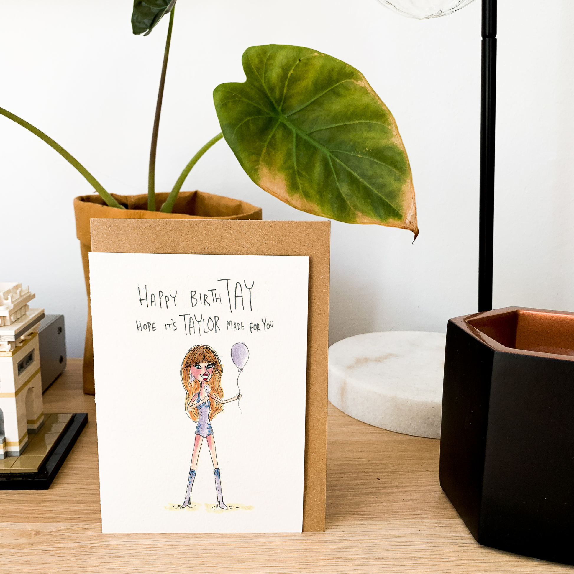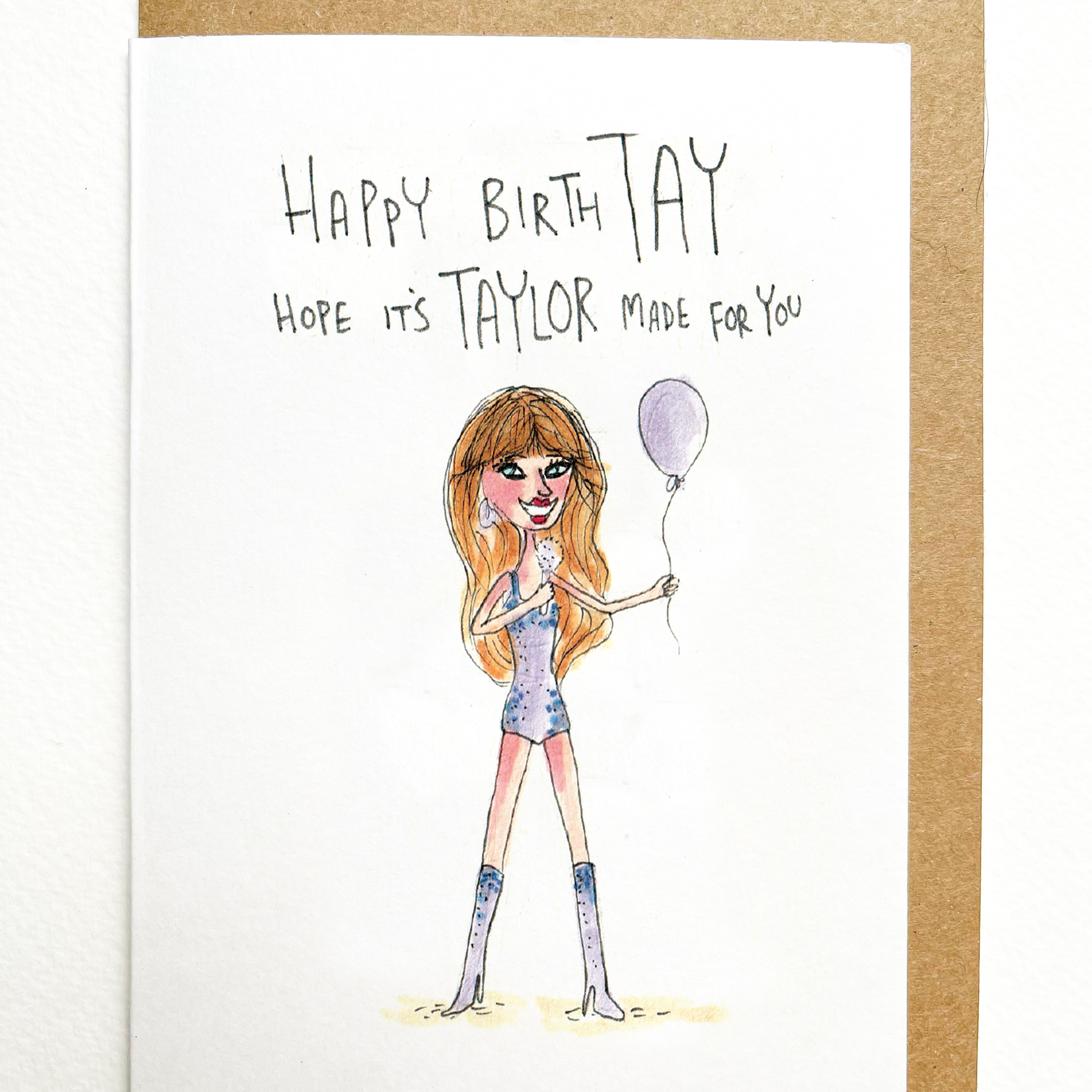 "Calling all Swifties and birthday stars! πΆπ Get ready to shake it off and celebrate with our 'Happy BirthTay, hope it's Taylor made for you' greeting card!