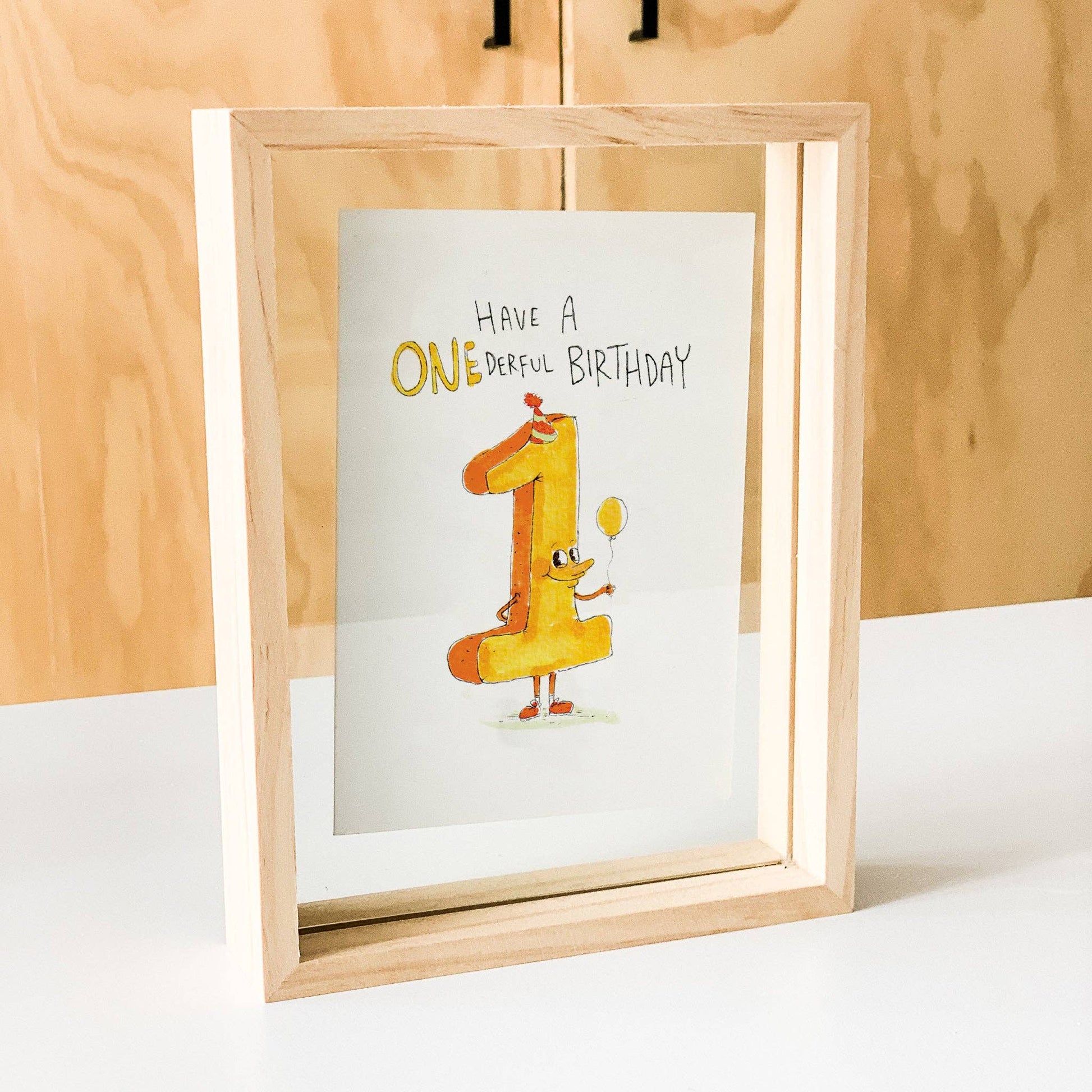 Make their first birthday truly ONE-derful with this charming hand-illustrated greeting card! Featuring a fun and friendly number 1 character, this card is packed with personality, bringing joy, humour, and warmth to any birthday celebration. Whether it’s for a first birthday keepsake or simply to bring a smile, this unique design is sure to stand out.