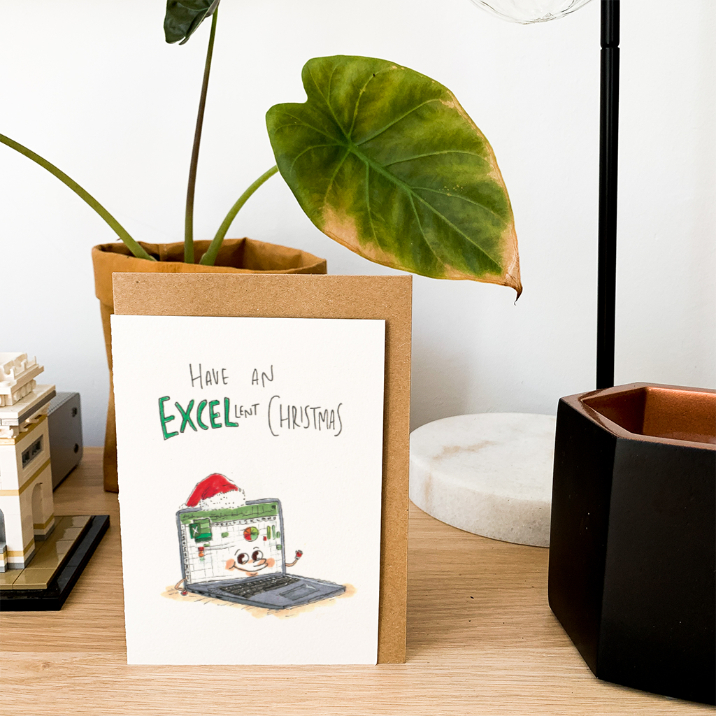 Great for office Secret Santas, data analysts, finance nerds, or your classic spreadsheet-obsessed sibling. Whether they’re Excel-lent with macros or just love a tidy cell, this card adds a little function to the festive.