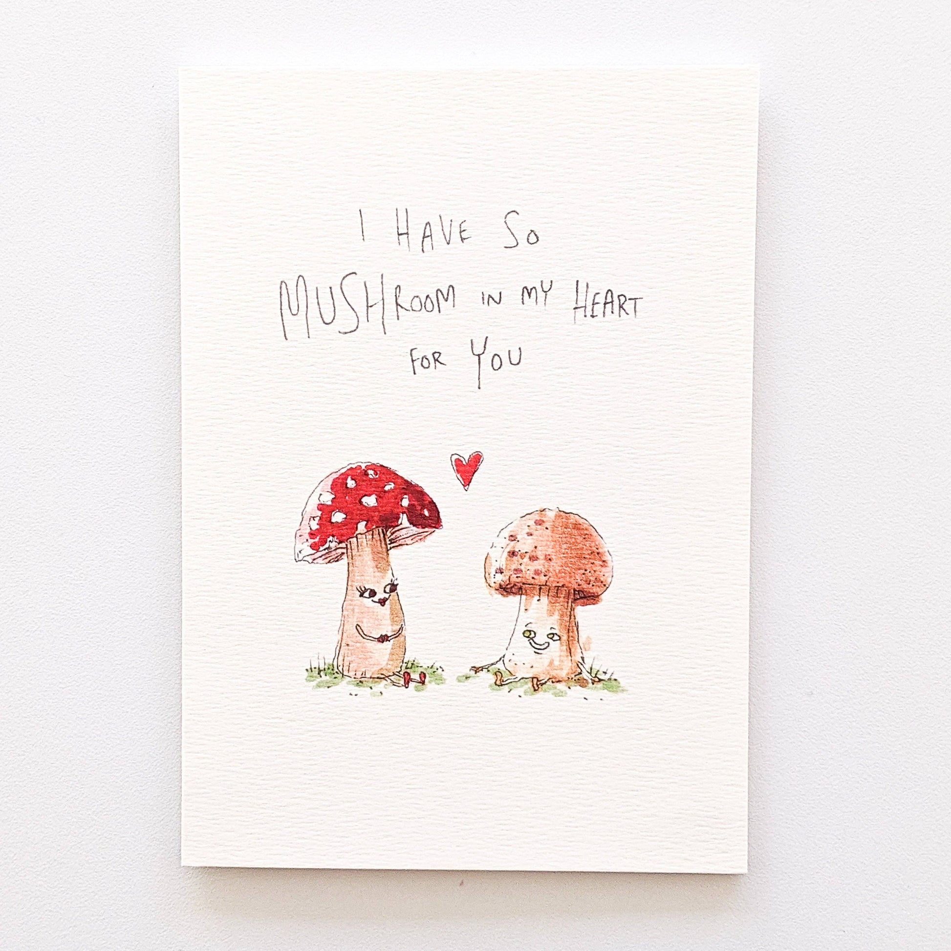 Look no further than our 'I have so Mushroom in my heart for you' greeting card! This card is the perfect way to tell your loved one that they're the 'fungi' of your heart. β€