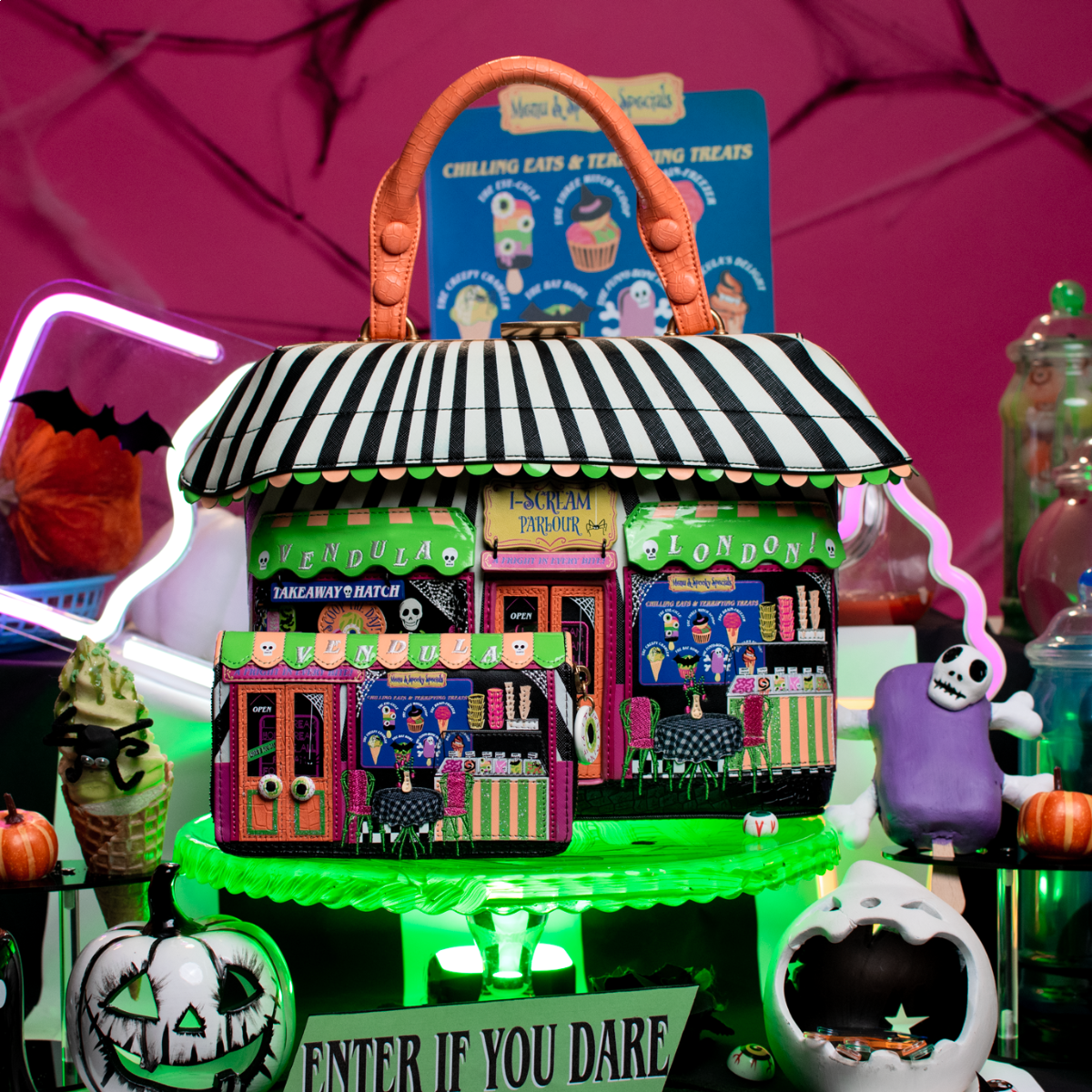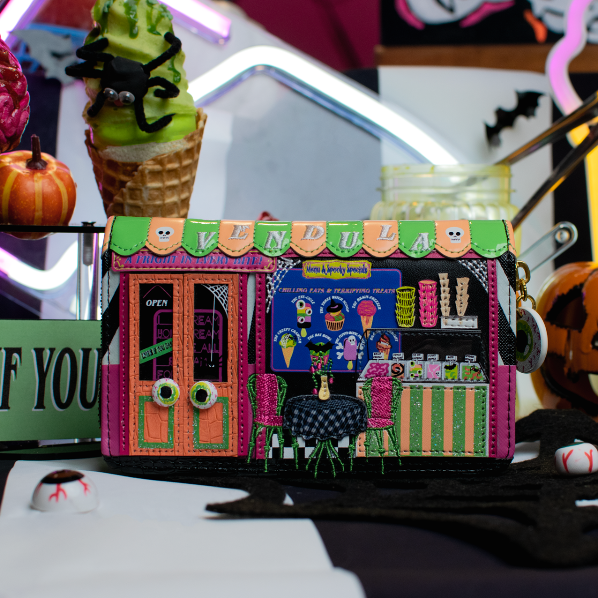 When it comes to small accessories, there’s something for everyone at Vendula London! The I-Scream Parlour Medium Ziparound Wallet fits in your new I-Scream Parlour Grab, Backpack or Taylor Bag, and it matches it to perfection. Cash, card and receipts will be kept safe thanks to the ziparound closing – how cool is that eyeball-shaped zip puller, by the way? This vegan leather wallet looks so funny that you will never cease to show its quirky details off. How much do you think a ‘’Bat Bowl’’ or an ‘’Eye-Cicle’’ ice cream would cost? Probably your soul… only kidding. Or are we?!