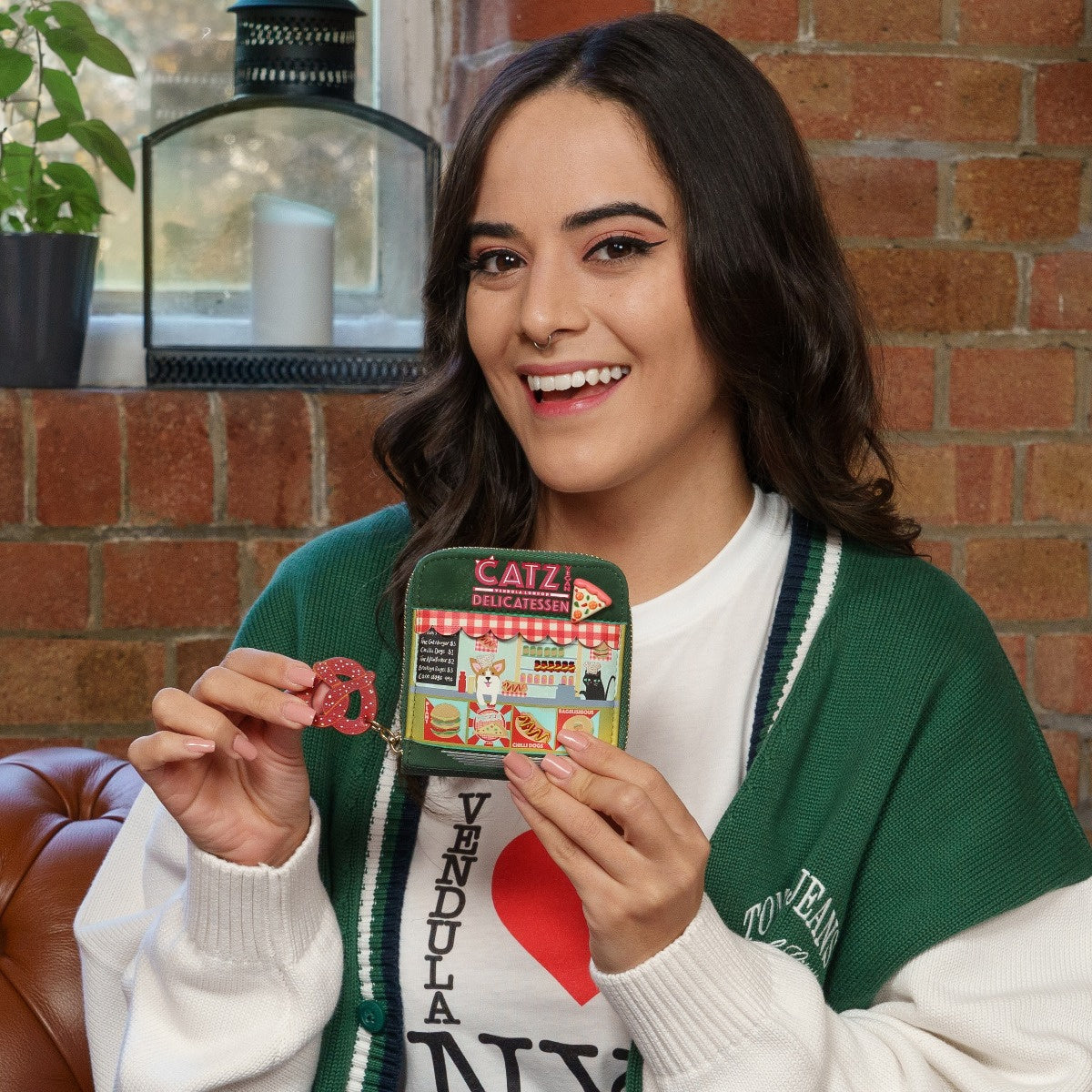 Do you need a wallet to match your Hetty bag? Let us introduce you to the New York City Cats & Corgis Square Wallet! This beautiful autumn piece is ideal for a Vendulette who prefers small accessories. It can fit in most of our New York City Cats & Corgis bags and it can contain several cards, as well as cash. How gorgeous does it look, with its printed and embossed details, as well as a pretzel-shaped zip puller? You would almost wish this Catz Delicatessen was real so you could treat yourself to a little snack. What would you try out first?
