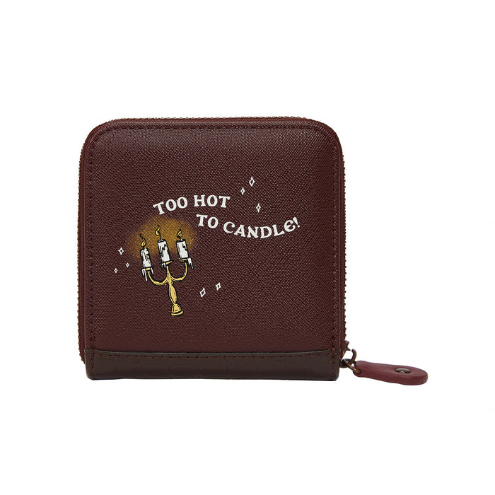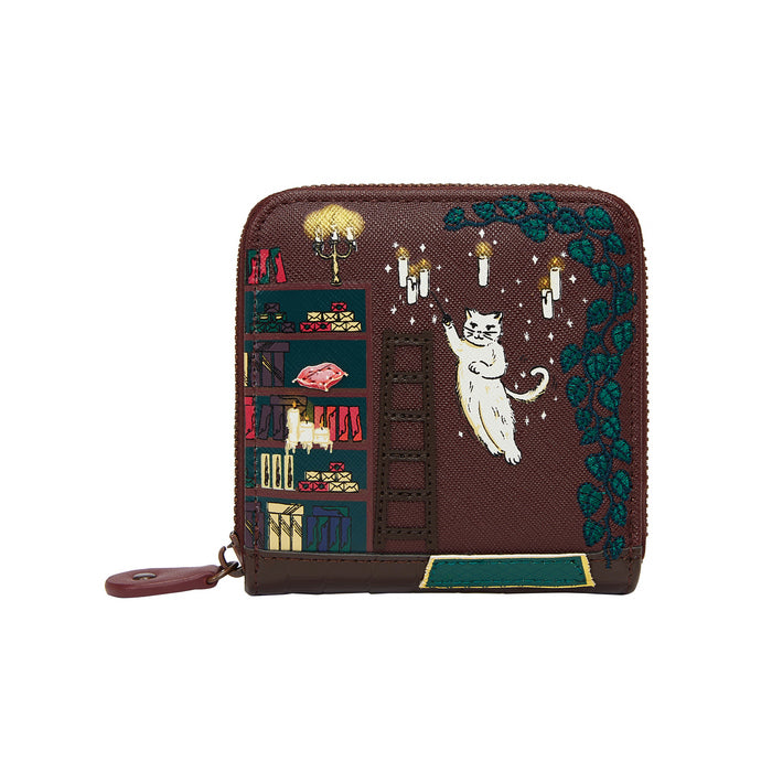 Efficient and pretty, the Mystic Wicks Candle and Wandmakers Square Wallet offers secure ziparound closure and plenty of space for cards, cash, and receipts. Decorated with a magical shopfront, a levitating cat, flickering candles, and a whimsical ladder to the spellbook shelf, this little gem proves that good things really do come in small packages. It’s a wallet worth every sparkle of its candlelight.