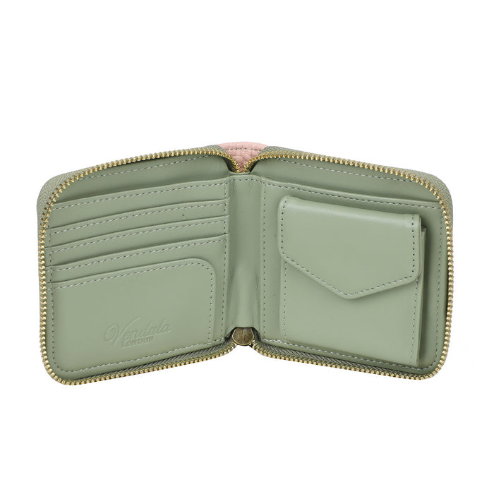 Got a sweet tooth? The Vendula Pie Shop Square Wallet is the treat you deserve. Slightly smaller than standard wallets, it still holds plenty, with space for cash, cards, and receipts—and a ziparound closure for peace of mind. Made from vegan leather in a luscious green with delightful appliqué pie shop details, it’s as cute as it is practical. Want to impress your crew? Pair it with the matching handbag. Sweet success!