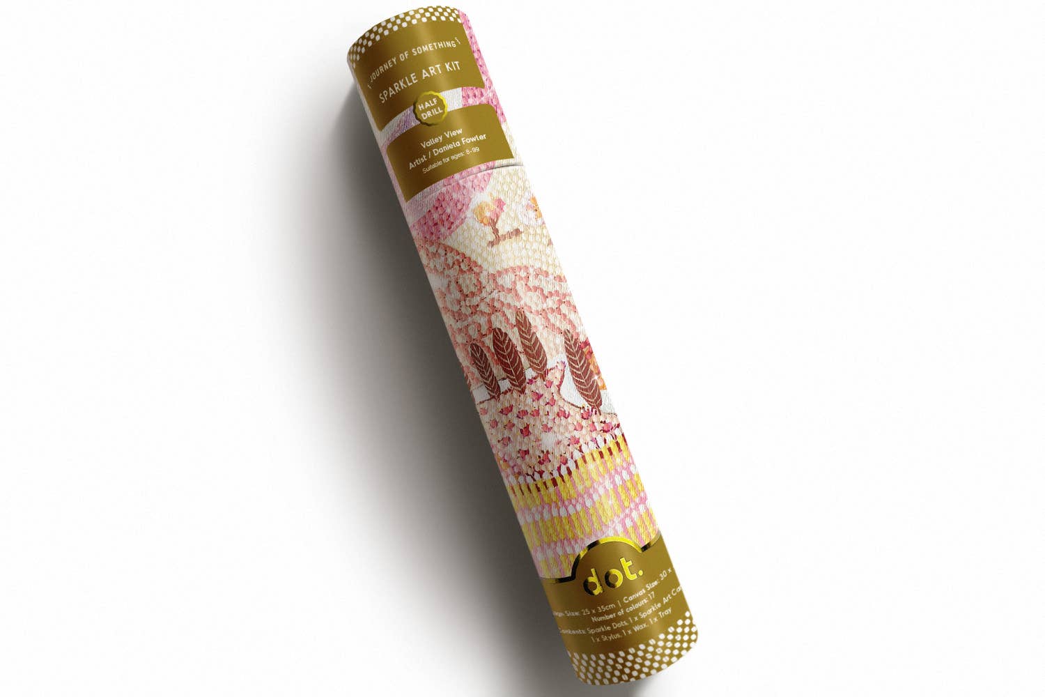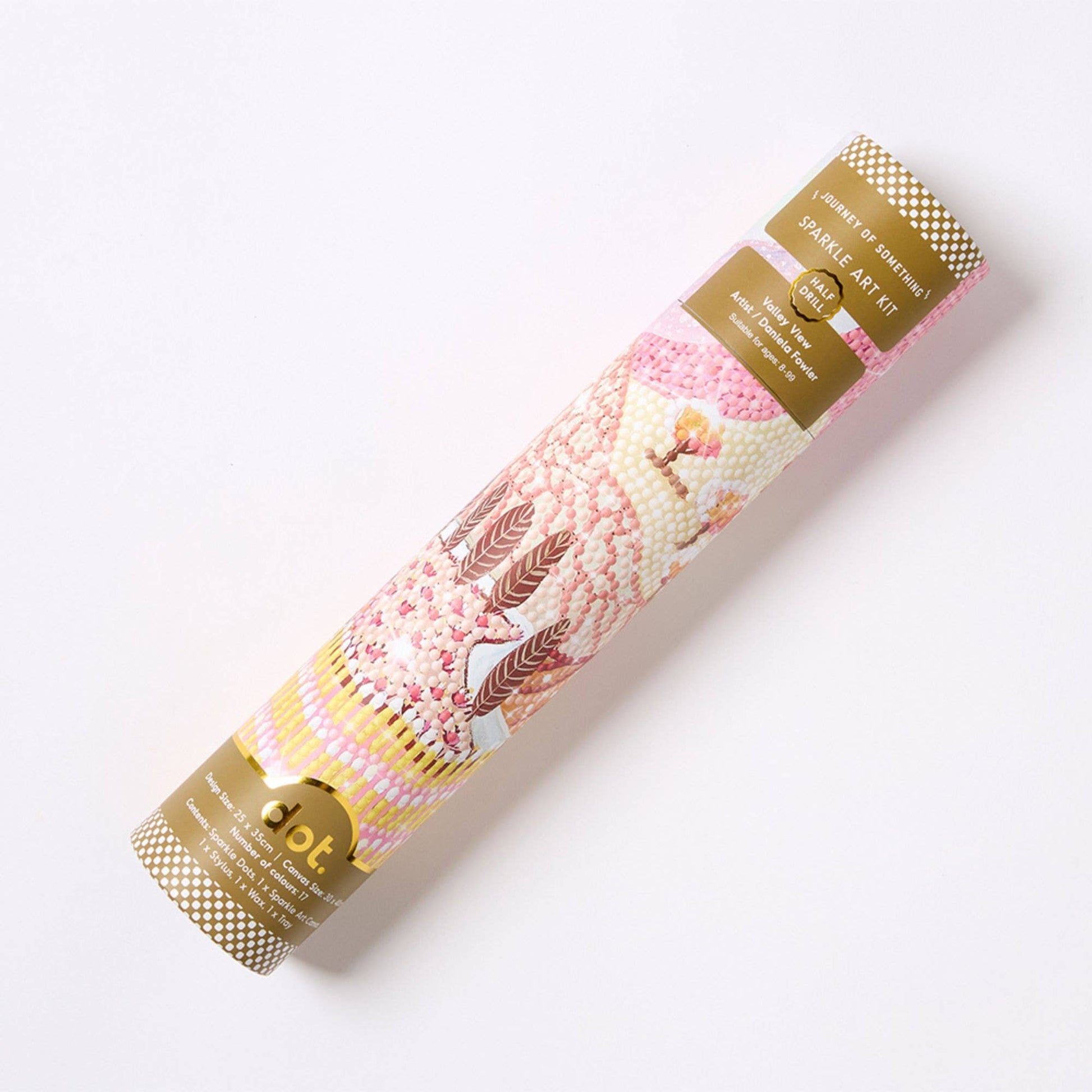 Completed Artwork Size 25 x 35cm (size of canvas including border 30 x 40cm). Suitable for Ages 8 - 99 Australian Owned and Designed Contents Sparkle Dots 1x Sparkle Art Canvas 1x Stylus 1x Wax 1x Tray About the Artist Daniela Fowler was born and raised in Germany. When she longs for European mountains or places that she can’t be at, she simply paints landscapes that transport her to those magical places. Her landscapes are mostly imaginary, inspired by places visited or seen, full of colour and pattern.